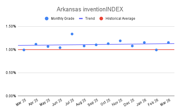 Arkansas inventionINDEX March 2026: 1.15% (B- grade)