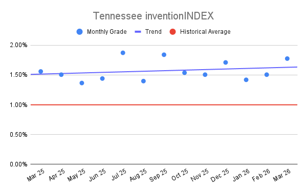 Tennessee inventionINDEX March 2026: 1.78% (A+ grade)