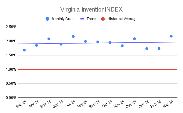 Virginia inventionINDEX March 2026: 2.17% (A+ grade)