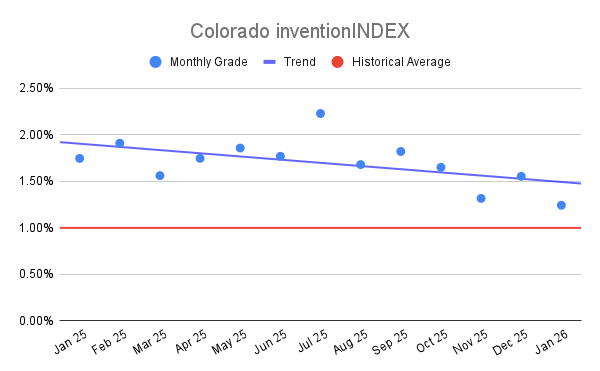 Colorado inventionINDEX January 2026: 1.24% (B- grade)