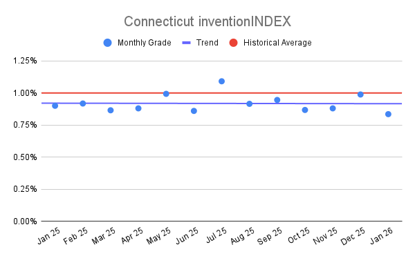 Connecticut inventionINDEX January 2026: 0.84% (D- grade)