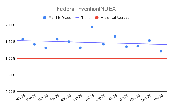 Federal inventionINDEX January 2026: 1.22% (C+ grade)