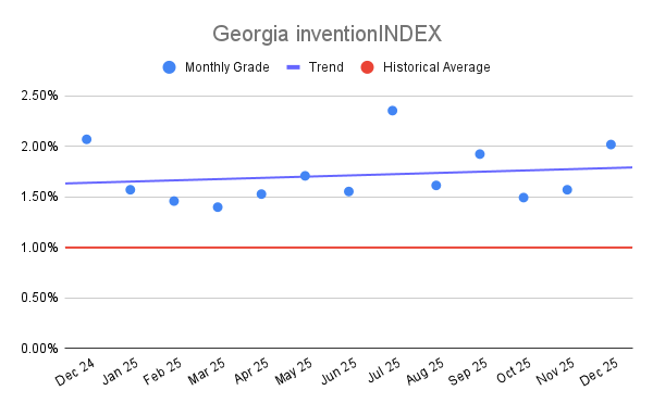 Georgia inventionINDEX December 2025: 2.02% (B grade)