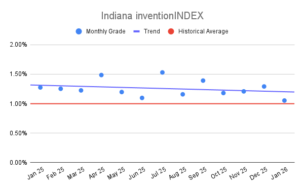 Indiana inventionINDEX January 2026: 1.05% (C grade)