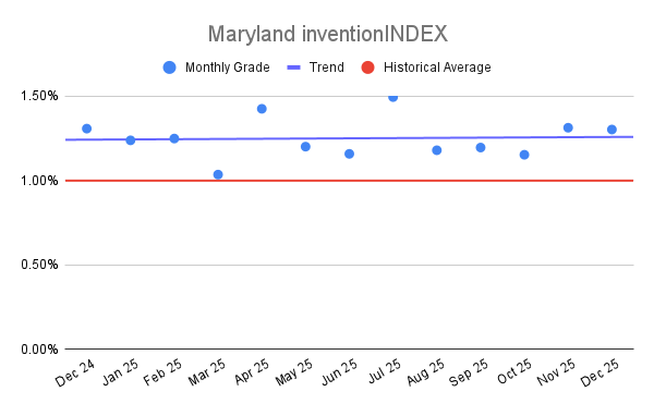 Maryland inventionINDEX December 2025: 1.30% (A grade)