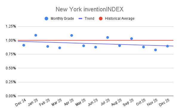 New York inventionINDEX December 2025: 0.90% (D+ grade)