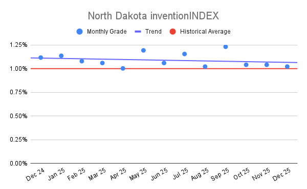 North Dakota inventionINDEX December 2025: 1.02% (C+ grade)