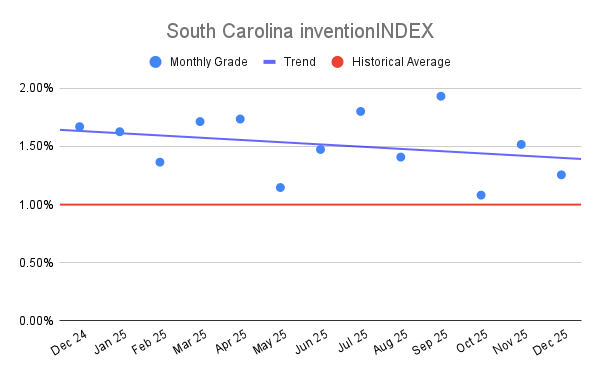 South Carolina inventionINDEX December 2025: 1.26% (B- grade)