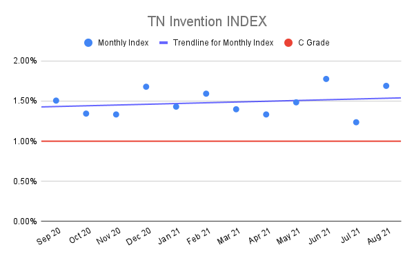 Tennessee Invention Index August 2021: 1.69% (A+ grade)