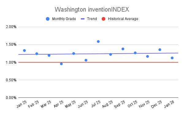 Washington inventionINDEX January 2026: 1.12% (C+ grade)